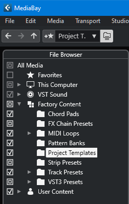 Was mache ich falsch bzw. wie bekomme die Vorlagen hier wieder angezeigt, damit ich diese in Cubase dann auch wieder sehe und auswählen kann?