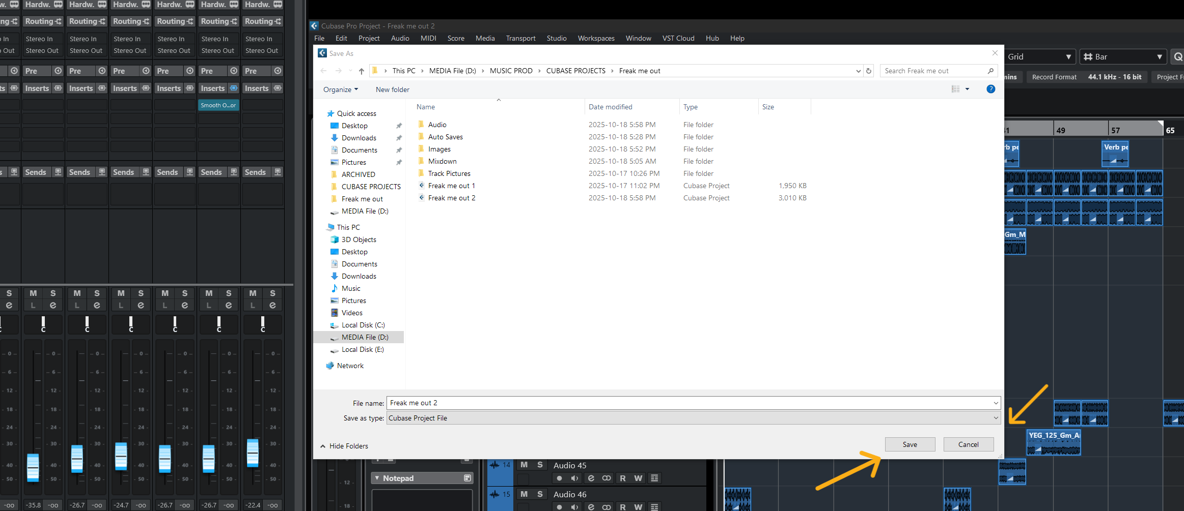 Tried saving as new version from the start and Cubase froze on the save screen — completely unresponsive.
