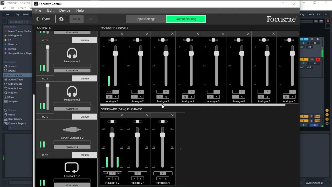 Maybe this video helps with setting up your Focusrite. I learned that different models require a different setup, though.