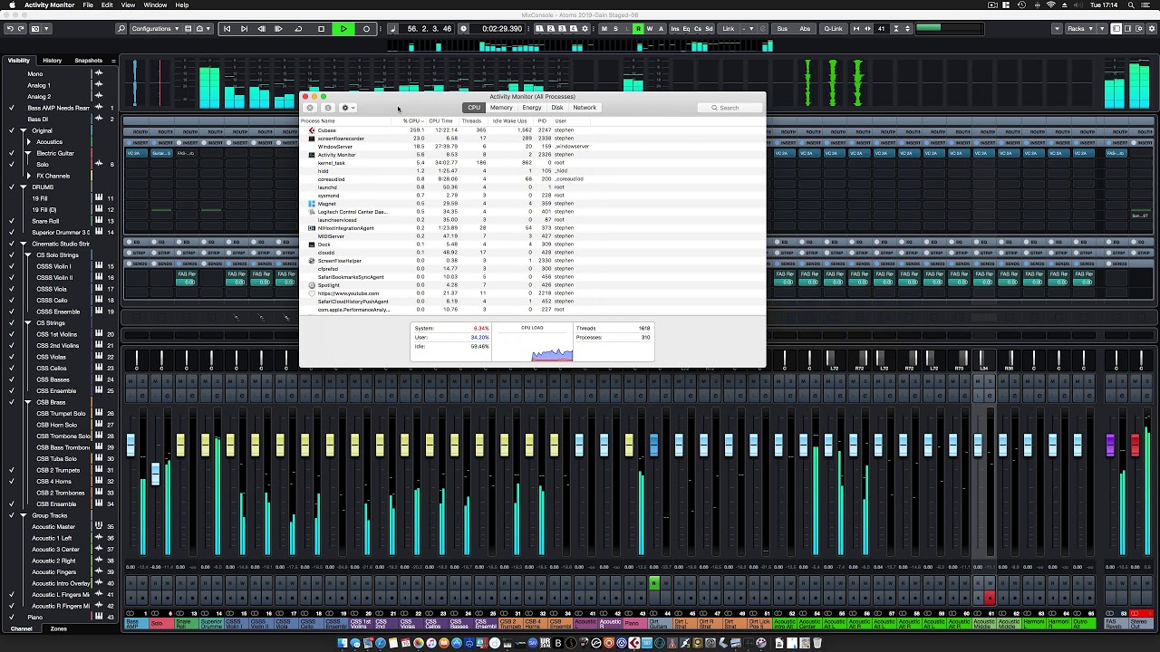 You can see from this video my CPU usage is about 1/3 of the entire (i7 iMac) capability. I have 32 gig ram and a 2 gig geforce 680MX.