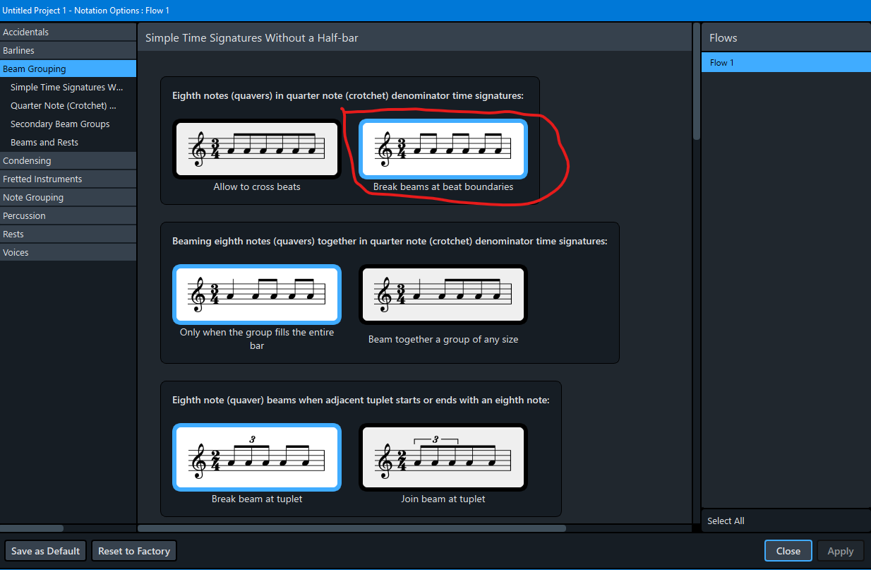 Is there a setting somewhere which I’m not familiar with that controls what looks to me (and to the professional players whom I’ve consulted on this) like errant beaming?