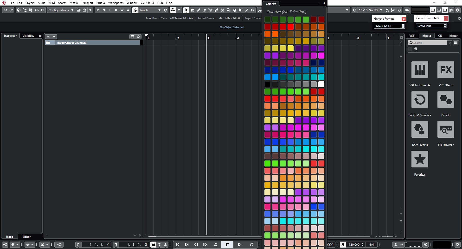 I don’t mind the new undocked colour palette that floats, but the colour button docked at the top of cubase should still be the list!
