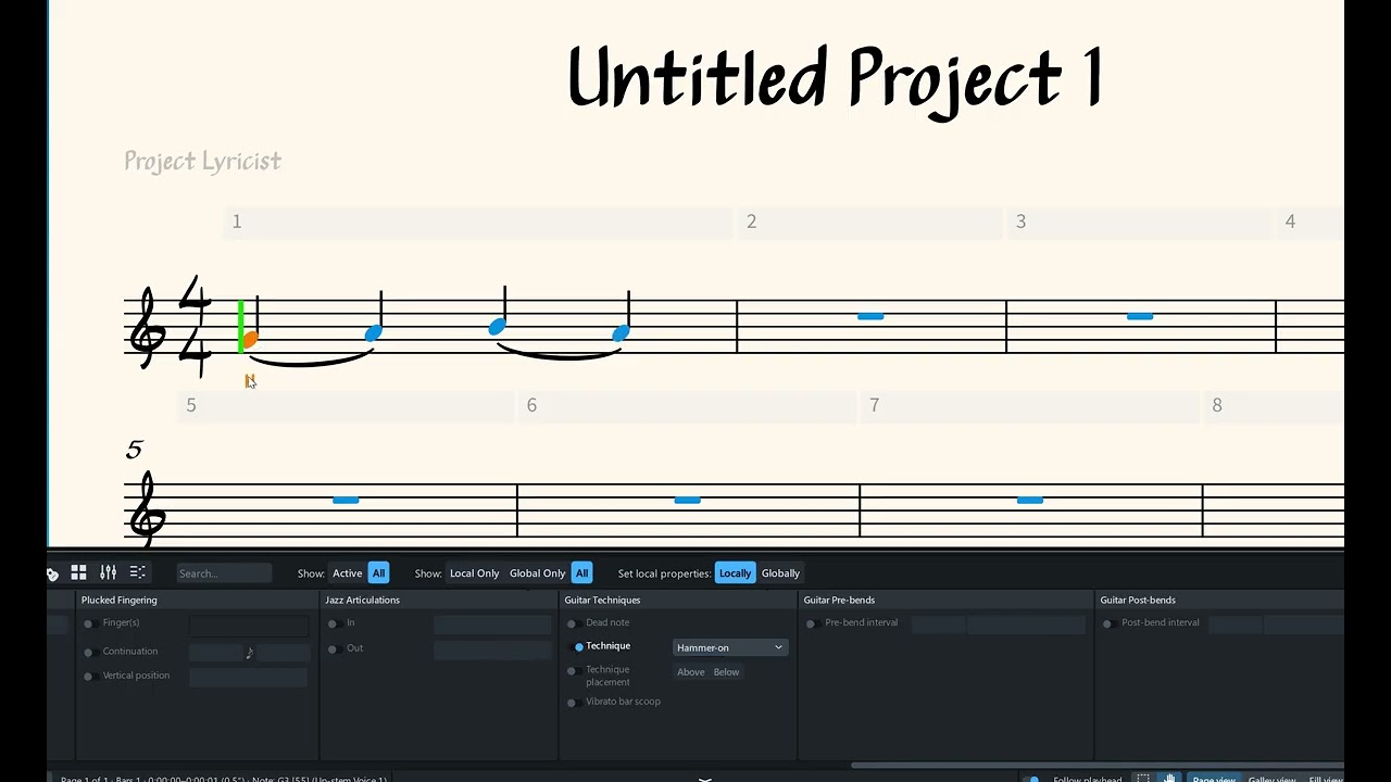 To the team: You could consider enabling automatic H and P placement for fretted instruments, depending on the melody going up or down. As you know, these “techniques” aren’t really that, but rather two of the three ways of playing legato on a guitar…