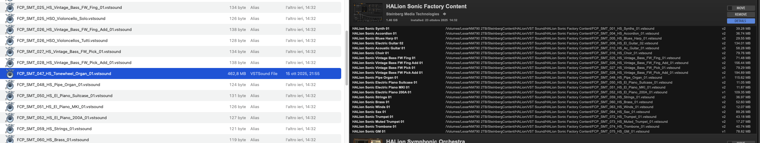 And as already mentioned, some files don’t belong to a sound library, but Dorico resp. Cubase or other programs expect them at certain locations, so if you move out a file from the default install location, you need to replace the original file with an alias that points to the new location. It’s tedious, sure, but that’s what the Steinberg Library Manager was conceived for, you click one button and the manager does the rest for you.