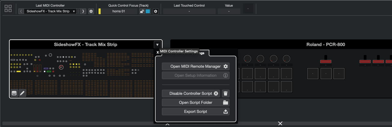 SideshowFX controller not affected–no duplicates. It uses Mackie Control.