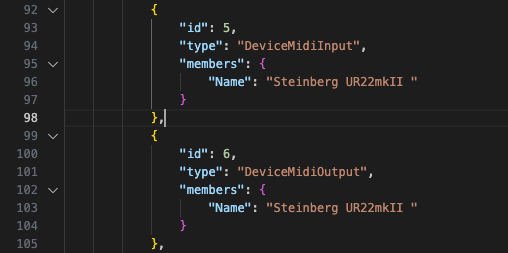 Since that didn’t work, I replaced the empty “Name” fields in “DeviceMidiInput” and “DeviceMidiOutput” with the exact port names for the MIDI device my controller is attached to, and tested again.