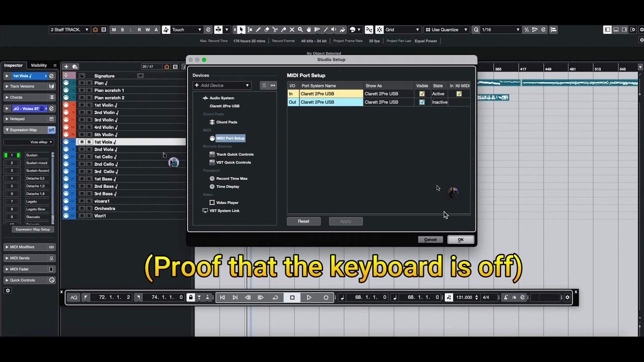 The question was why would I get a different result if I kept the Audio/MIDI interface ON. Wasn’t it?!
