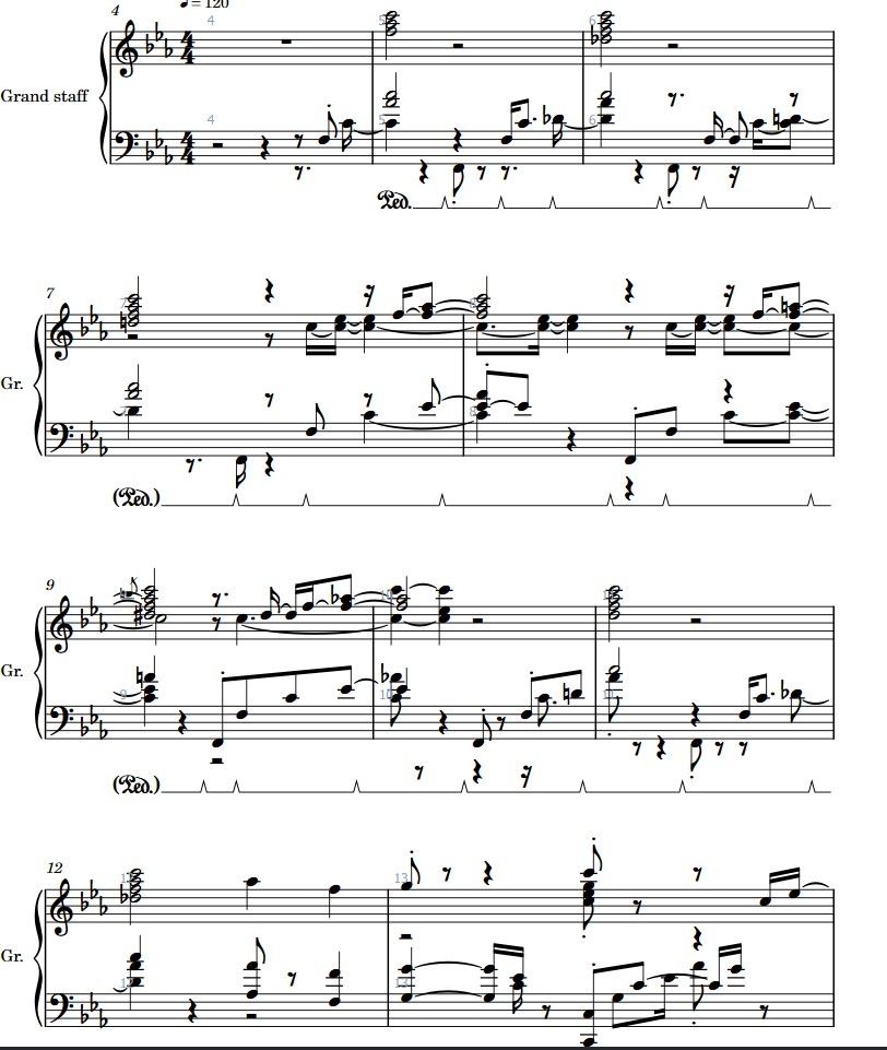 I like scores that are in 4/4 to have their measures in the stave easily showing that, rather than having 2 or 3 measures in a stave, as keeping track of measure numbers and form is easier. Besides using the settings parameters, I didn’t otherwise work on the C13 score, and could make it look better, but I have just seen that C14 will undo what I choose. I wasn’t aware that C14 will also change the actual duration of notes, which is something else I wouldn’t want to happen automatically, as I would decide myself. So it really seems a backwards step. The other big hype for C14 was its drum patterns, but since I am mainly a drummer and come up with my own patterns, this is not that useful for me either. Major disappointment. Reminds me of Adobe updates that will no longer even show thumbnails of videos shot with later cameras, while earlier versions kept up and showed and played, thus requiring free programs, such as Windows media or Nikon Studio to even know what the videos I took are.