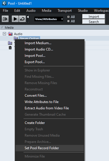 Nein, C:\Work\Studio\Test\Unbenannt-03 existiert auf der C: Platte und in diesem Ordner muss ich dann meine Audio Datei suchen. Sie liegt ja dann noch etwas weiter unten im “Pool Aufnahme Ordner.