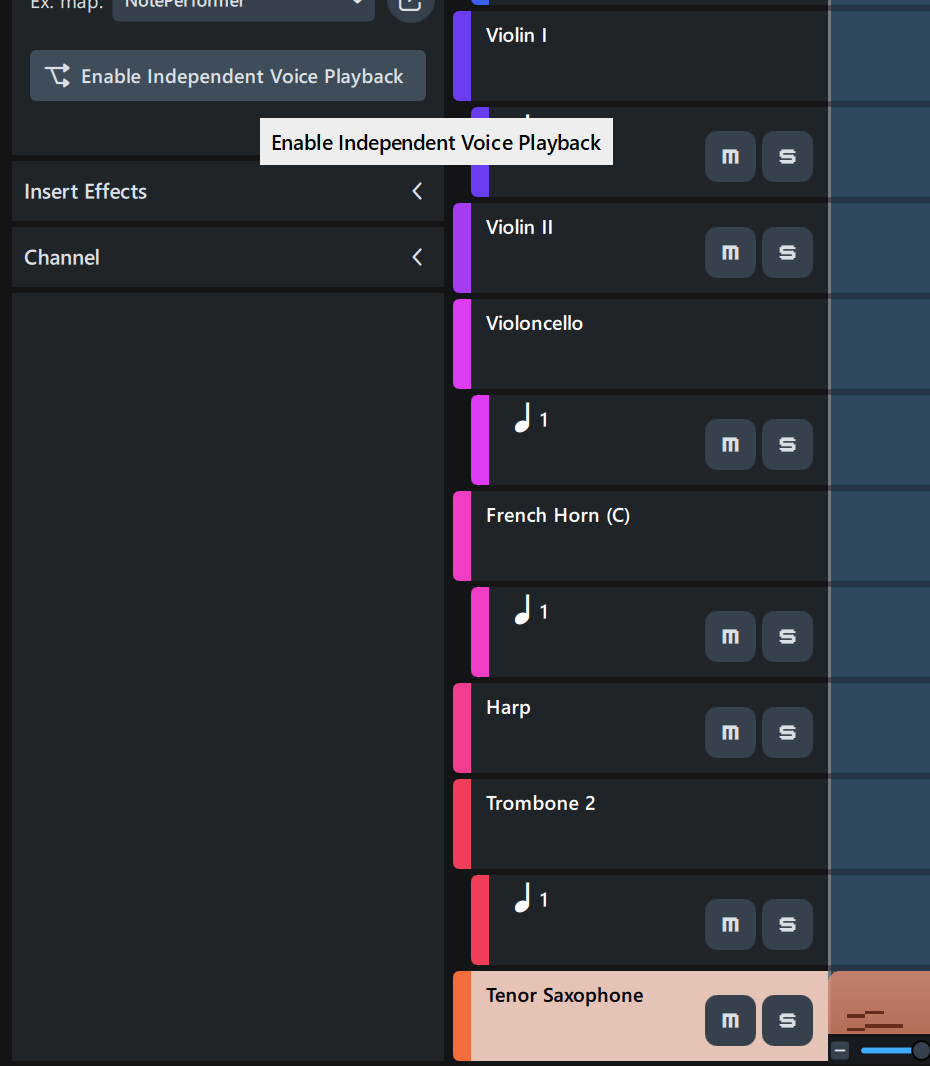 ps Ignore the current layout of the score - this part, and many others, will eventually be cued in a Keys part or used for a click track (with higher-quality sounds… NotePerformer’s saxes aren’t exactly the most realistic!).