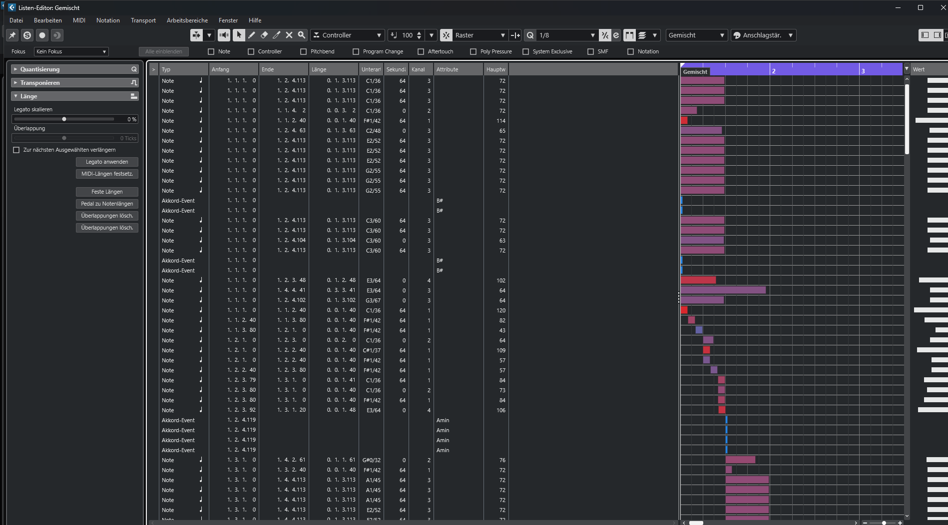kannst Du bitte noch mal einen Screenshot (wie in Deinem Bild 1 Midi - Listeneditor ) machen von der Drumspur Midikanal 10. Dabei die Noten-Events am Besten ausblenden.