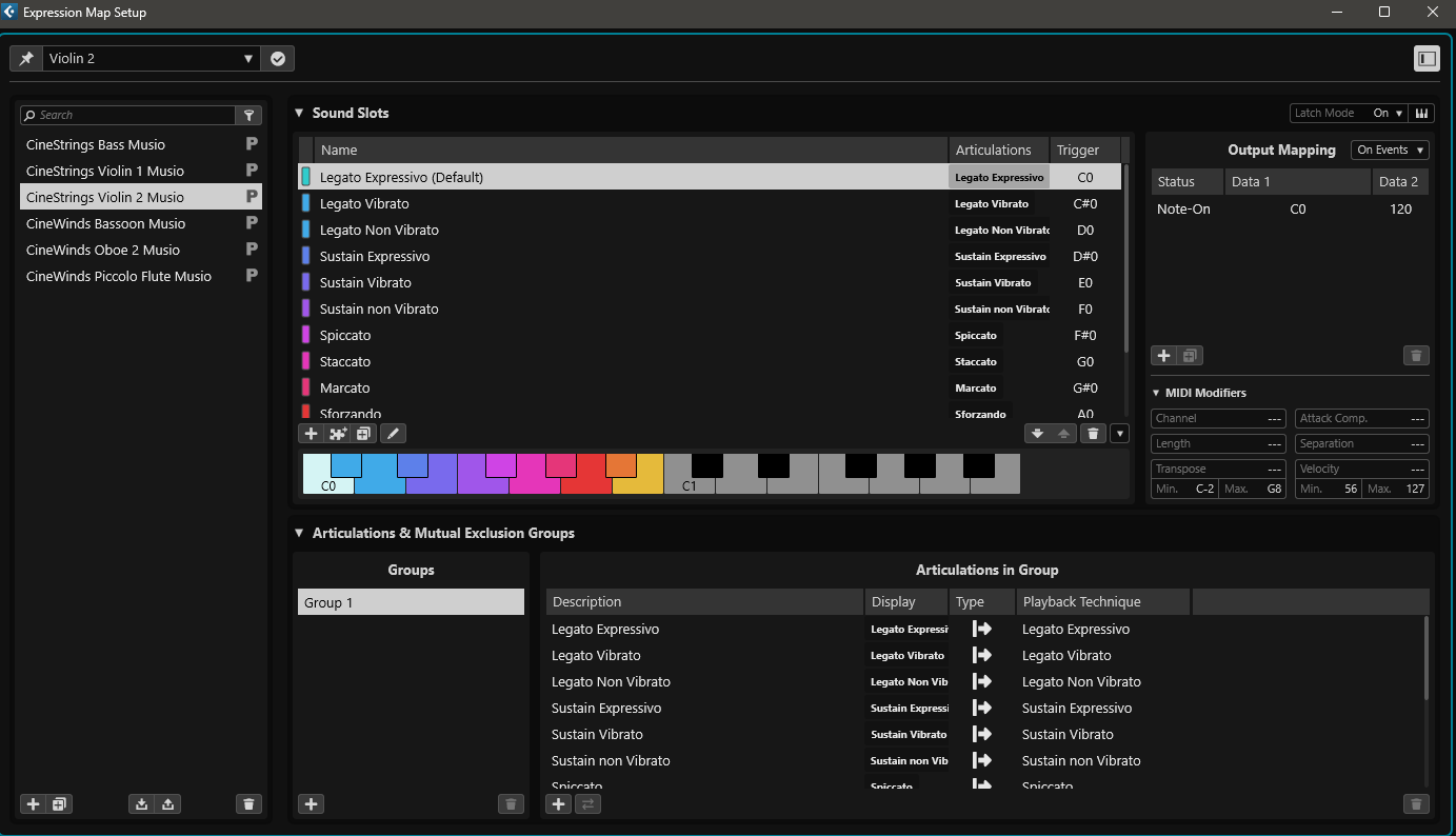 This looks like quite a simple map so you certainly shouldn’t be having any problems in that regard, but knowing Musio in particular, I know it isn’t able to change articulations instantly - the keyswitch has to be sent a certain amount of time prior to the onset of the note. If your direction is timed exactly with the note start (ex. quantized) then it might arrive too late for the change to be effective.