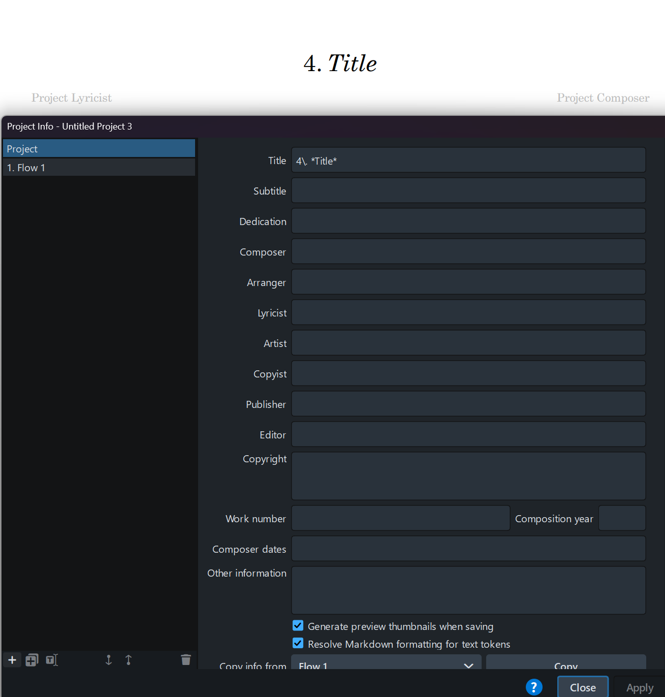 The issue with the number followed by a period is that Markdown uses that to indicate a numbered list. Dorico won’t render the numbered list, but it also silently swallows the number and period rather than displaying them as is. A backslash is a common “escape” character in programming, instructing the interpreter to render a character literally rather than give it any special meaning. Escaping the period tells the Markdown interpreter that you really want a period, not the start of a list.