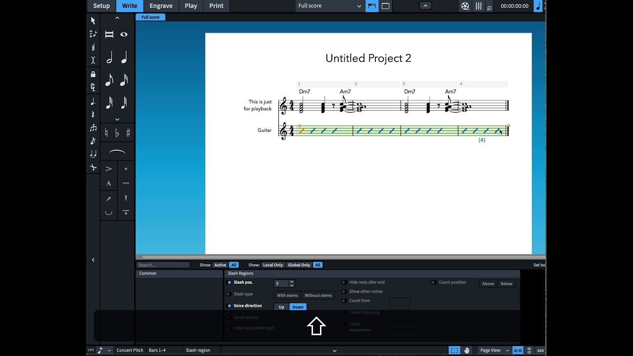 For instance, slash regions hide notes automatically - they’ll still play back but won’t be visible.