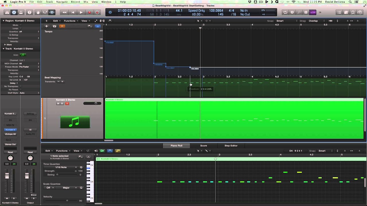 c) Play the melody in Logic, with Adaptive Tempo selected, then tell Logic to adapt the project tempo to the region’s. This should analyze the beats in the recorded track, and create a Tempo track.