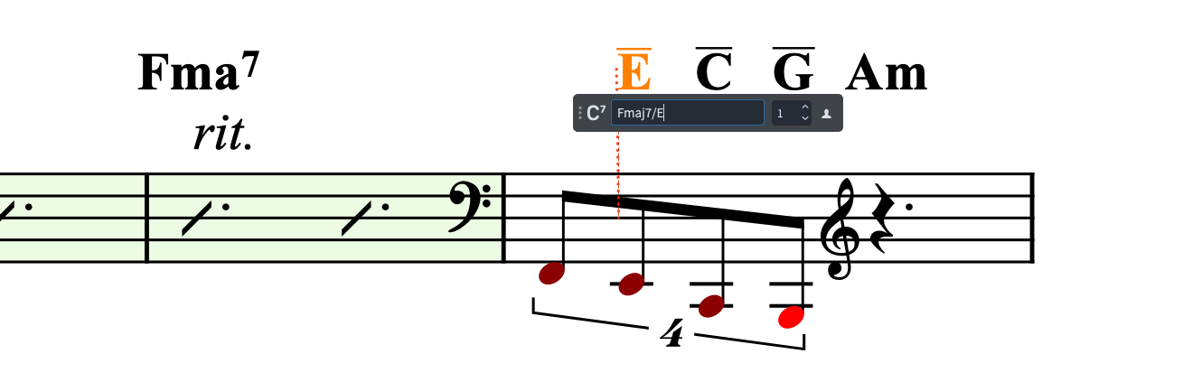 I just tried typing “Fma7/E” and the “Fma7” portion of the chord symbol still shows. What am I still doing wrong?