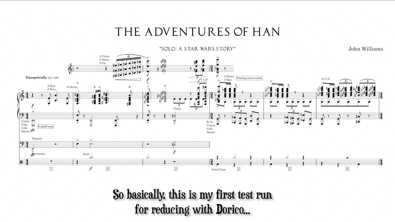 I think Dorico works reasonably intuitive to produce any kind of score. But what I currently struggle even to grasp a concept of where to start is doing a score reduction and analysis like they are popular on certain YouTube channels. For example this one: