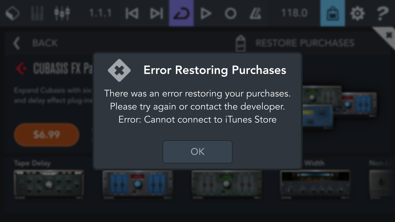 Cut to the last few days where Iām trying to get the IAP I bought from Cubasis 2 (all of them), to transfer to the newly purchased Cubasis 3 on my iPad Air 3. I have had the same result as you and have sent several bug reports to the developer through the Audiobus forum they are very active on (forum.audiob.us). I was told that the only way I could transfer my IAPās was to get Cubasis 3 LE in March and then buy the full features IAP in LE 3.