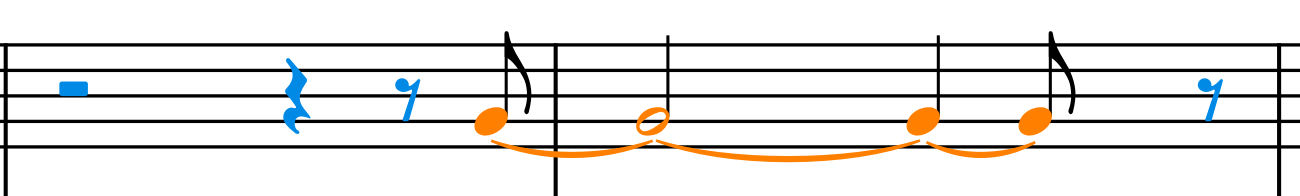 Writing the Whole note and dragging with the shortcut to the position I need, I’m getting this eighth note tied to a dotted half, tied to an eighth note (next example).