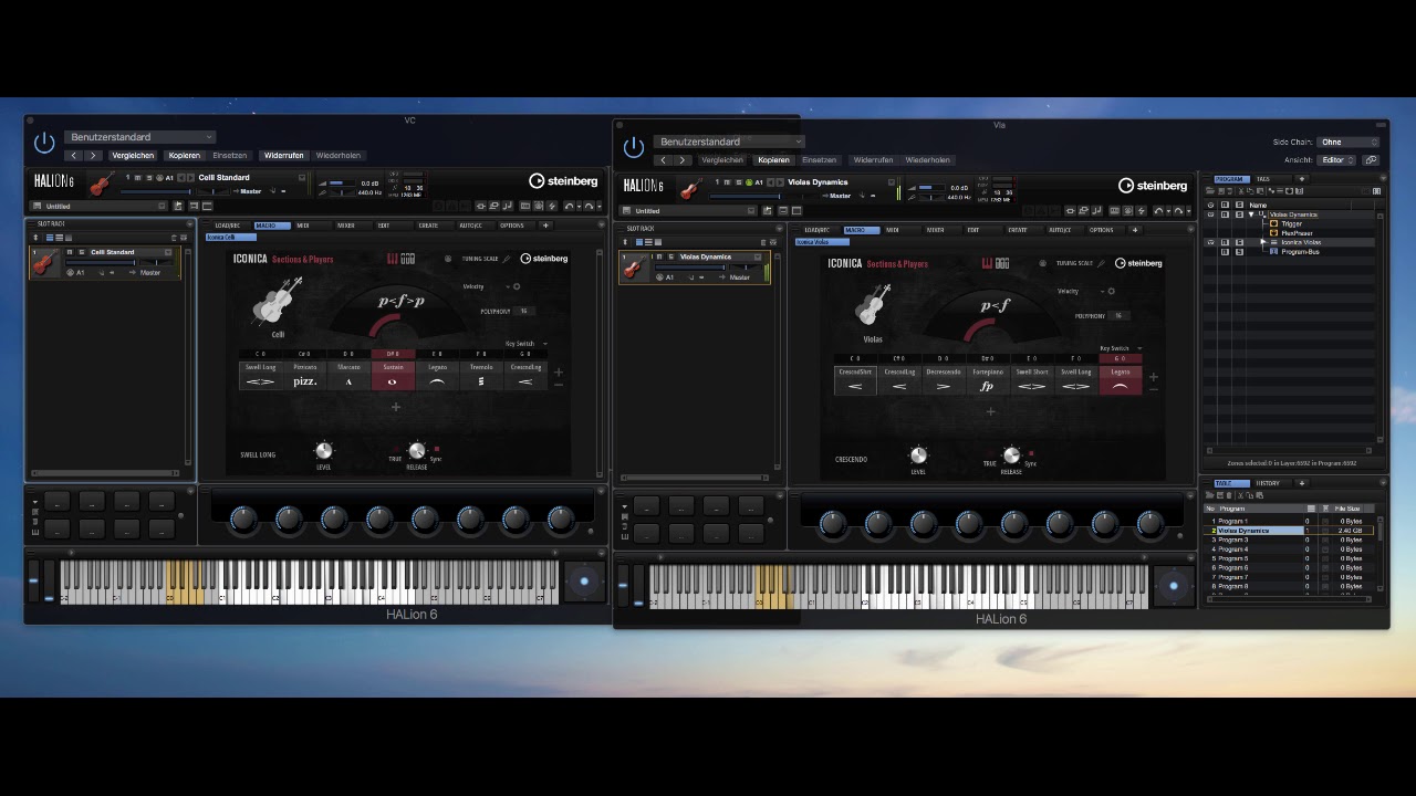 Video: my first encounter with Iconica Sections&Players, using cello and viola articulations. I used 2CAudio Precedence for positioning the two instances of HALion, cellos slightly to the right, violas slightly to the left, both using the same instance of Breeze 2 on a bus.