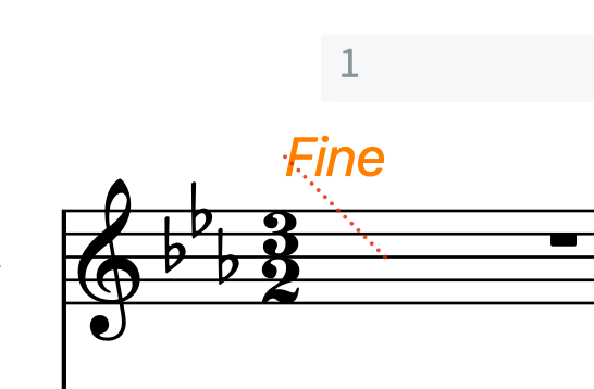The Proofreading panel warns about a ‘Fine’ marking that does not coincide with the played end of the flow, but it is not selectable because it’s positioned at the first rhythmic position. How should it be selected and removed? I attach the issuing file.