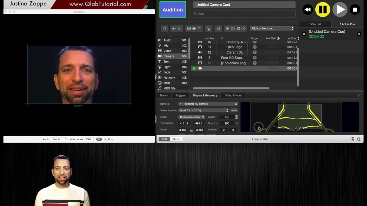 I need to be able to mix a live camera pointed at the performer with the video tracks, at certain times, pre-programmed on the timeline/song.