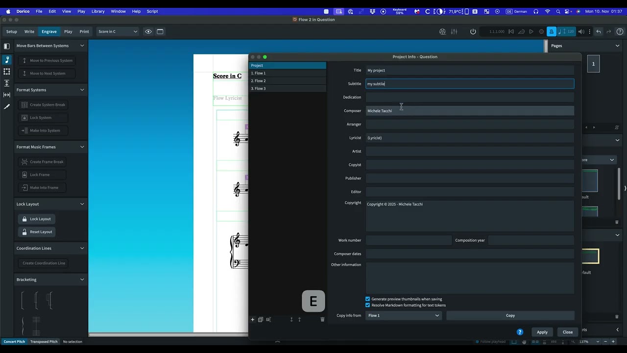 (I made a 6 minutes videos explaining some steps. The first part of the video refers directly to your issue. The second part are things that I found which maybe what you need or not. In this case ignore them. Anyways I feel that you may have misinterpreted some functionalities about Page and Flow heading templates, Project Infos, and general Layout options. I suggest the Discovery Dorico videos about layout that you can find on the YouTube Channel.)