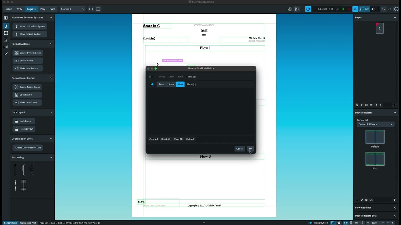 If I use the “manual staff visibility” command to get rid of a piano left hand staff, since I don’t temporarily need it, the music get moved to the previous flow…why?