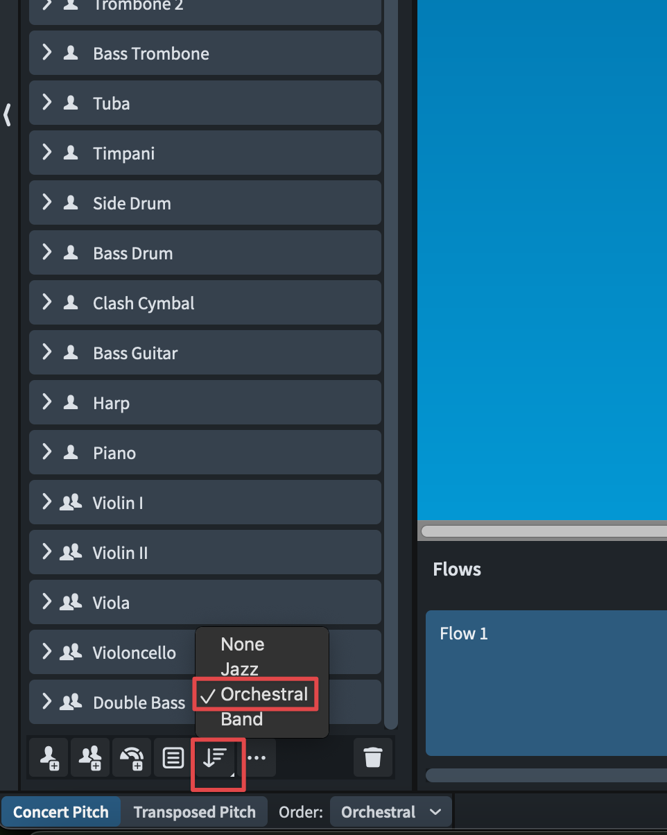 For sorting the Players, make sure you have the Orchestral sorting, clicking longer into the icon in Play mode: