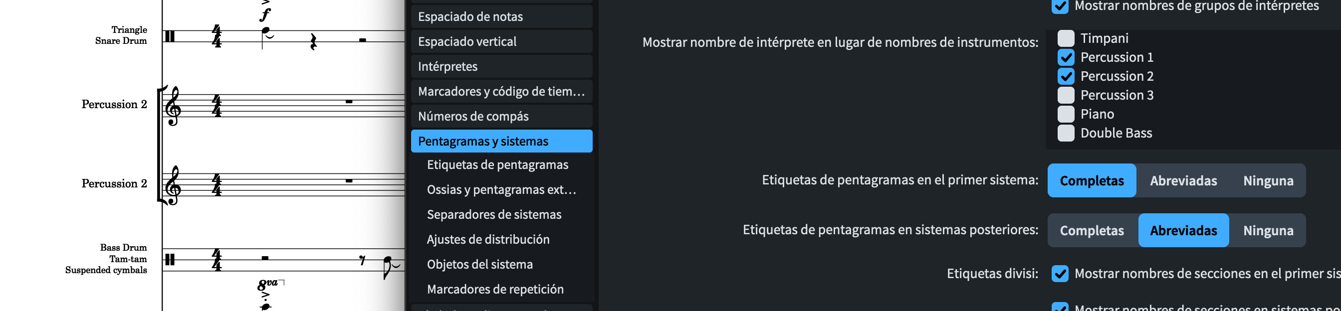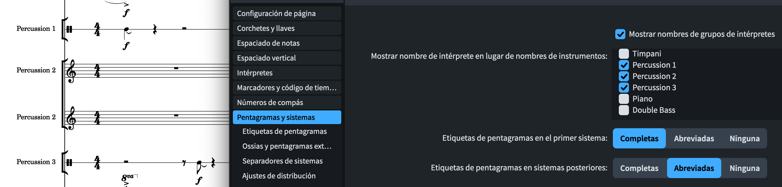 I’m sure I’m missing something, but now I don’t see the instruments I use at the beginning of the work, and in the following pages the name that appears again abbreviated is that of the instrument and not that of the player… Thank you!
