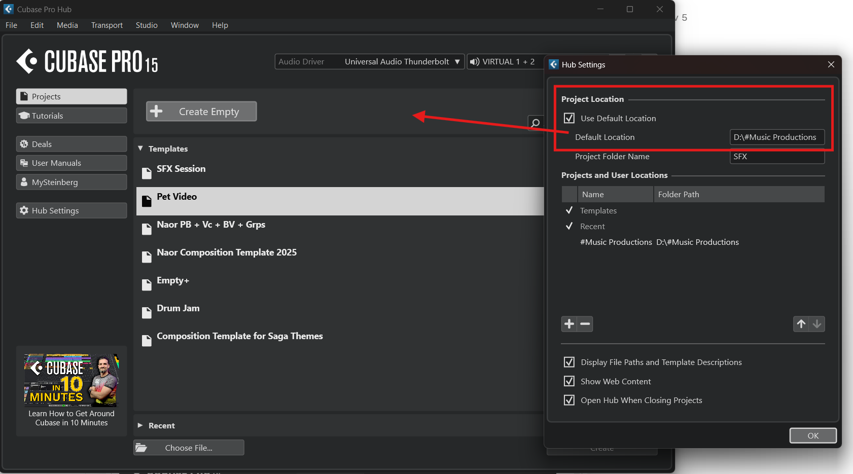 - Open Cubase 15; the hub appears