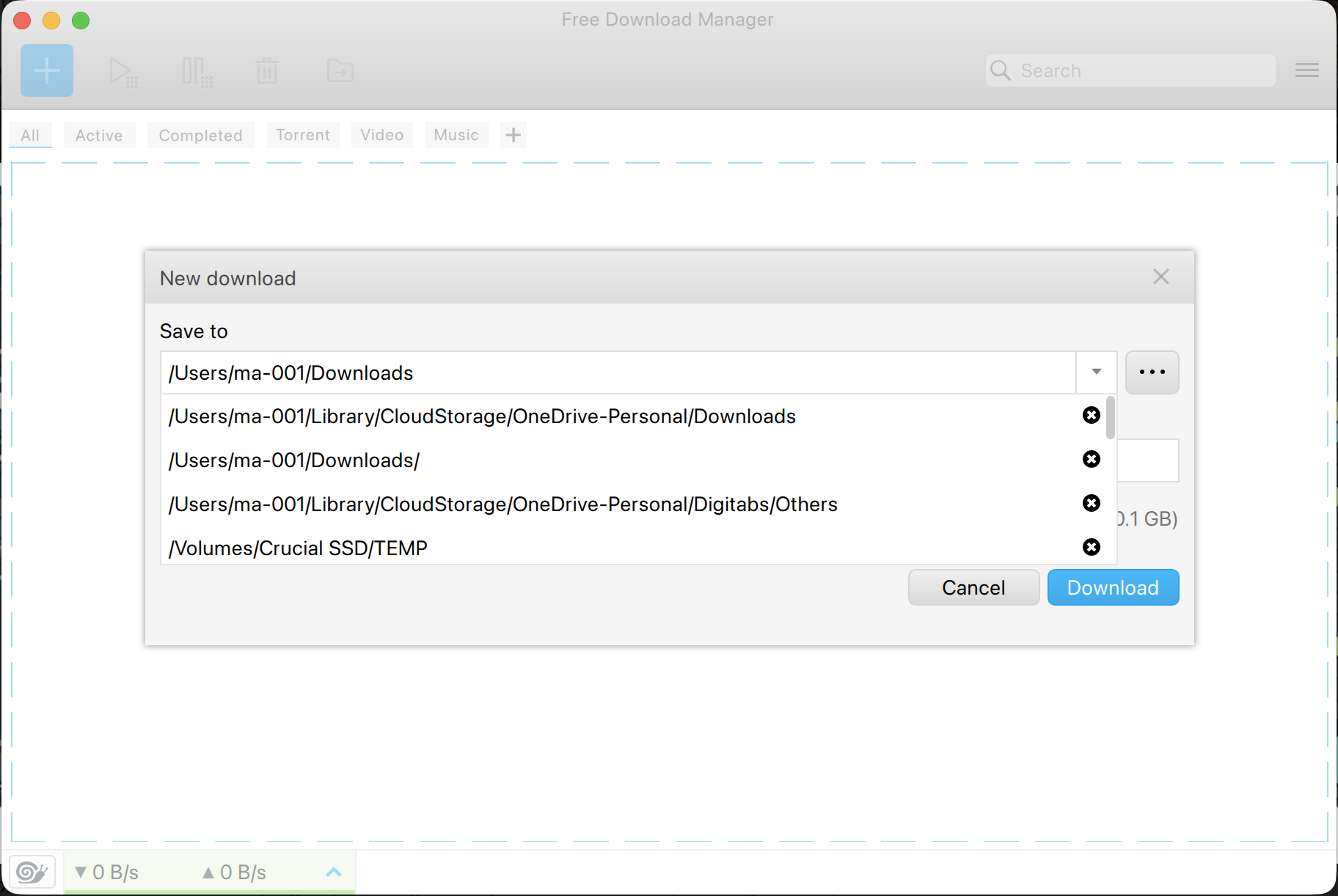 Would be even better if the default folder is a dropdown where we can select several recently used locations. Look at Free Download Manager for example.