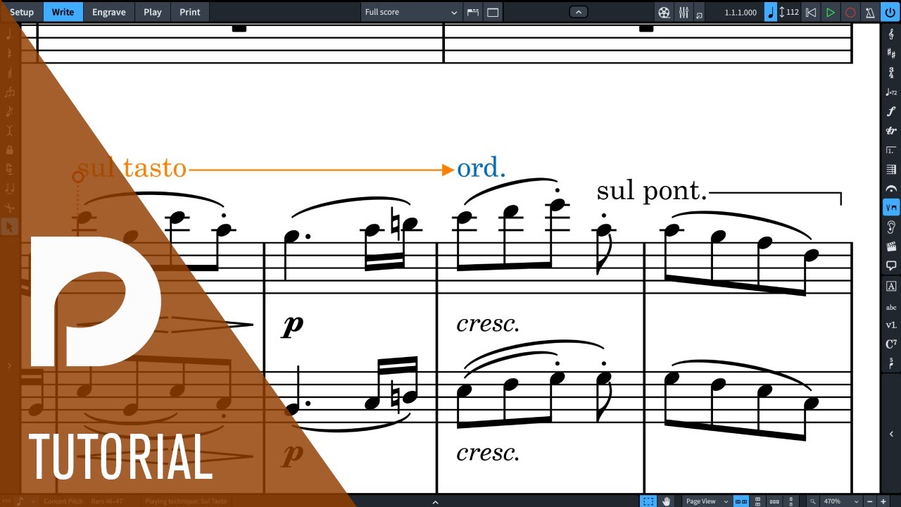 Annegret, I think you will find the results better if you use grouped playing techniques with continuation lines, rather than using separate playing techniques and line items. This video introduces the idea: