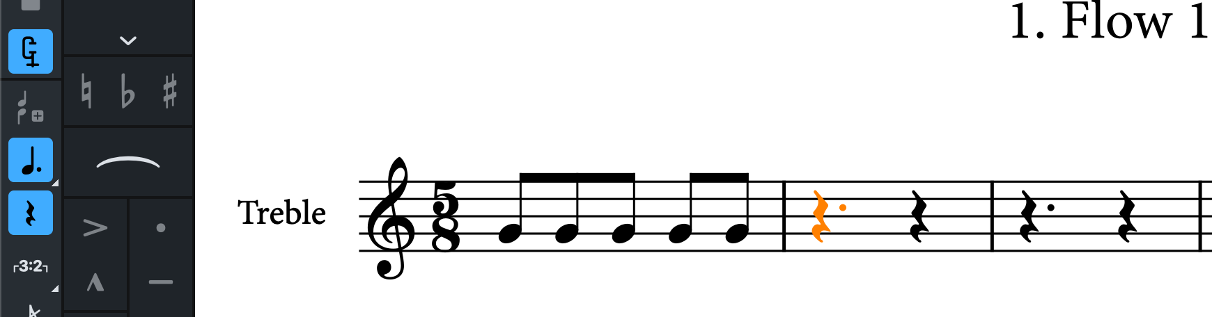 is there a way to set the automatically the pauses in ⅝ divided in 3+2/8 like the notes in the example?