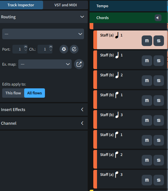 In my project, even though all of Keyboard 1’s staves share the same port and channel settings, they don’t appear to share the same endpoint configuration, as the mic settings from Staff 1 aren’t being applied to the others.