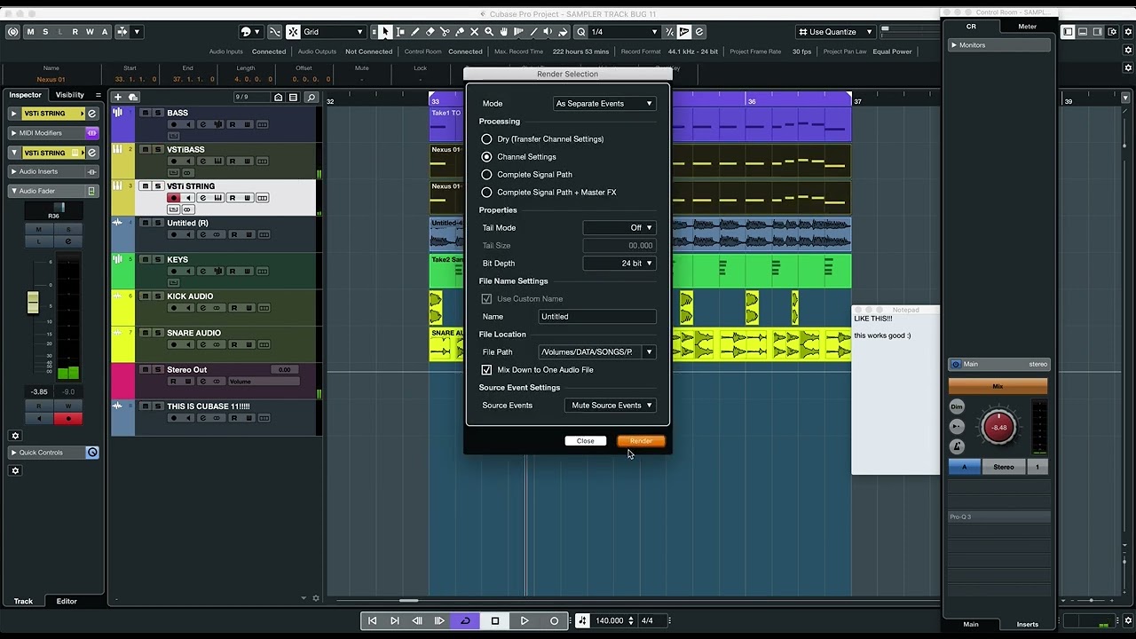 The problem is rendering multiple VSTi’s, multiple Sampler Tracks, or any combination of VSTi, Sampler Track or Audio Track.