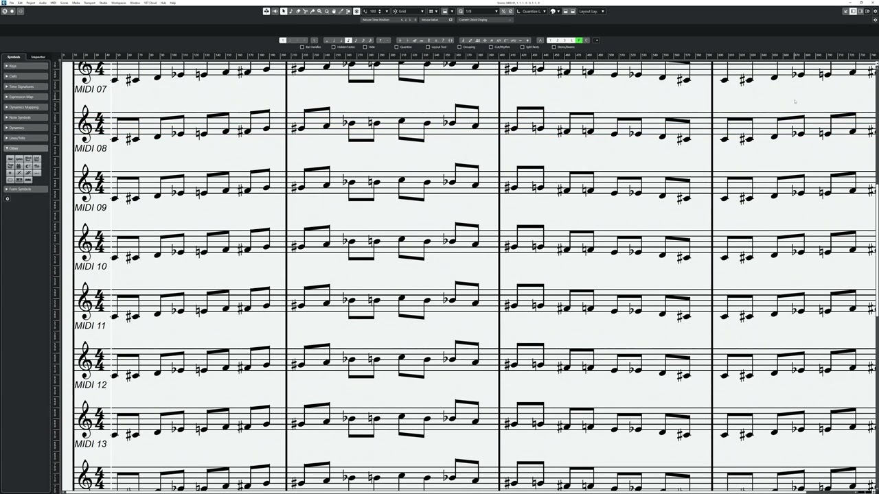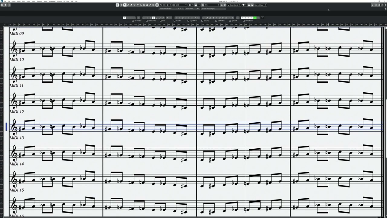0:26 the screen shakes a lot when I have auto-scroll enabled. It feels like Cubase is unable to keep vertical focus, depending on which staff I have selected, causing heavy eye strain.