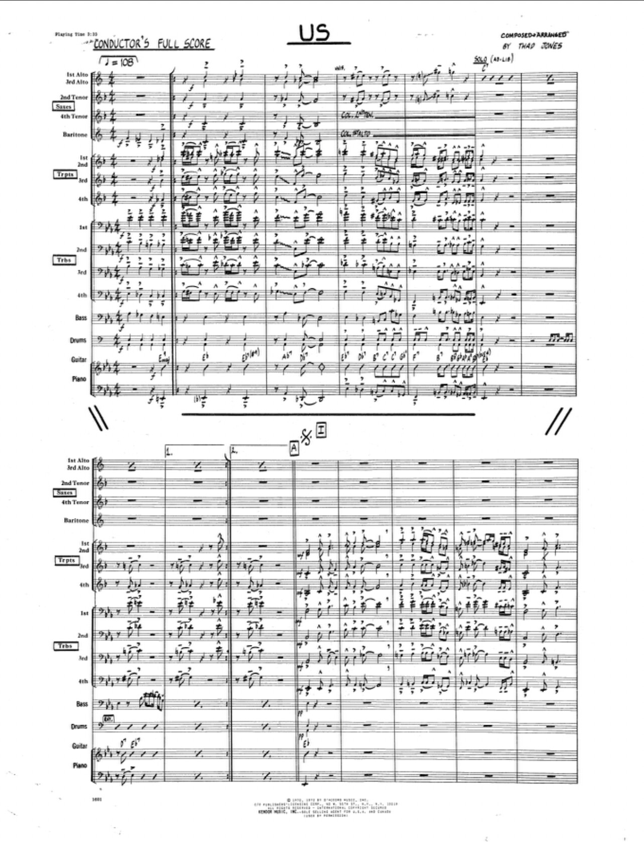Hand copied obviously, but if you need other examples, I think most of the Thad Jones conductors scores published by Kendor Music are formatted in the same semi-condensed, 2 systems per page format.