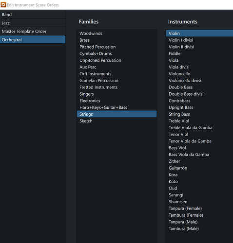 And here it is in the setup where it has been sorted to be above the woodwinds (presumably because I cannot give it a position in the score order for being absent there):