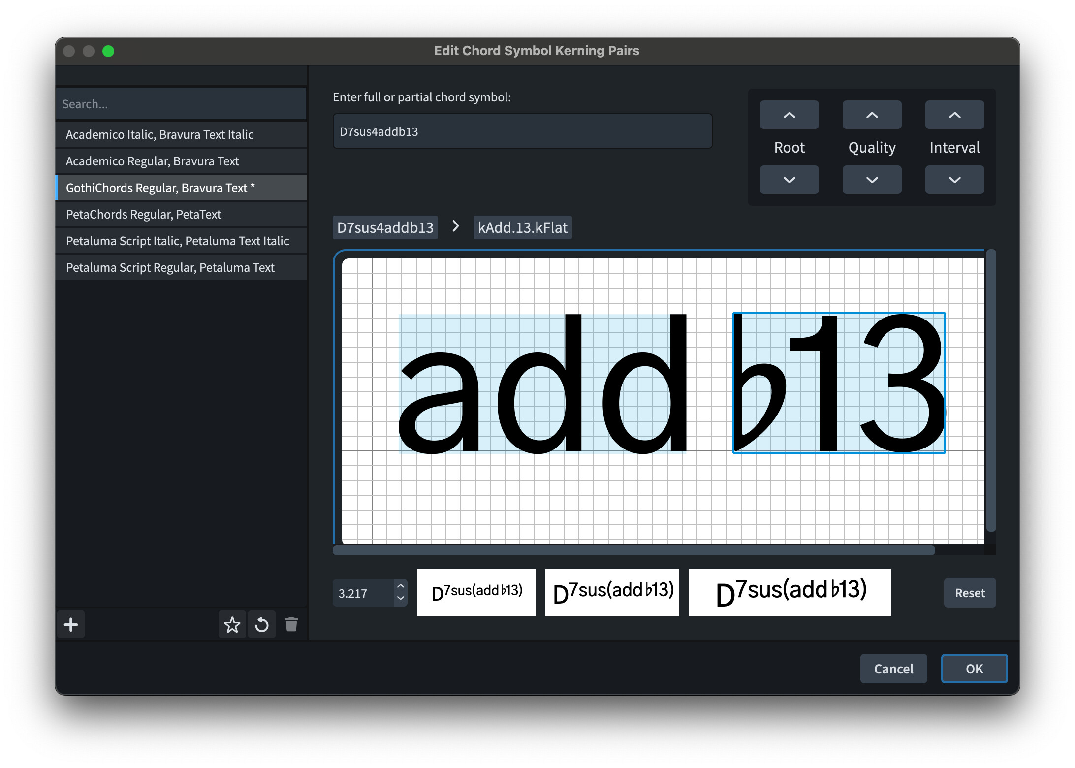 Click OK at the bottom right and you should find that the chord symbol on the page reflects whatever change you’ve made.