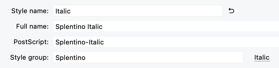 When I look it up in Glyphs3, the “Style Linking: This instance is the Italics of“ is empty in Splentino Italic. It is set to “Regular“ in other commercial fonts (e.g. AkzidenzGroteskPRO-It).