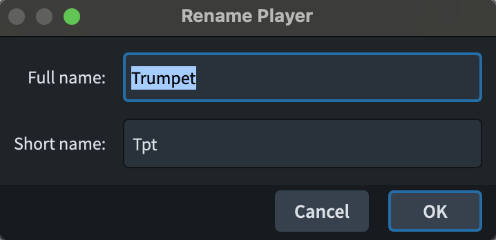 So, I’ve solved a mute switching and playback sound issue for trumpets with Harmon mute by adding another trumpet instrument to each player, renaming it to “Harmon” and assigning a muted trumpet sound in Play Mode. This works nicely with playback and the automatic “to Harmon” instrument change text. The only problem now is that in the score it shows the staff labels for the currently held instrument, which in this case is “Harmon” but I want it to keep reading “Trumpet”. Is there a way to solve this (optionally with alternatives to the instrument change solution)?