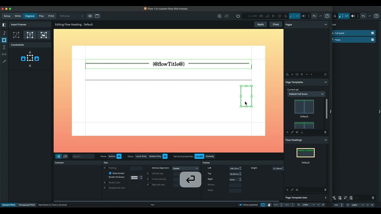 Hello. I followed the video you uploaded very well. Thank you. I have an additional question. I’d like to add a text box to Lesson 2. Do I create it in the blank space using Engrave/Insert Text Frame? Or can I create additional Flow Headings? Currently, the Lesson text box is created in Flow Headings. Thank you.