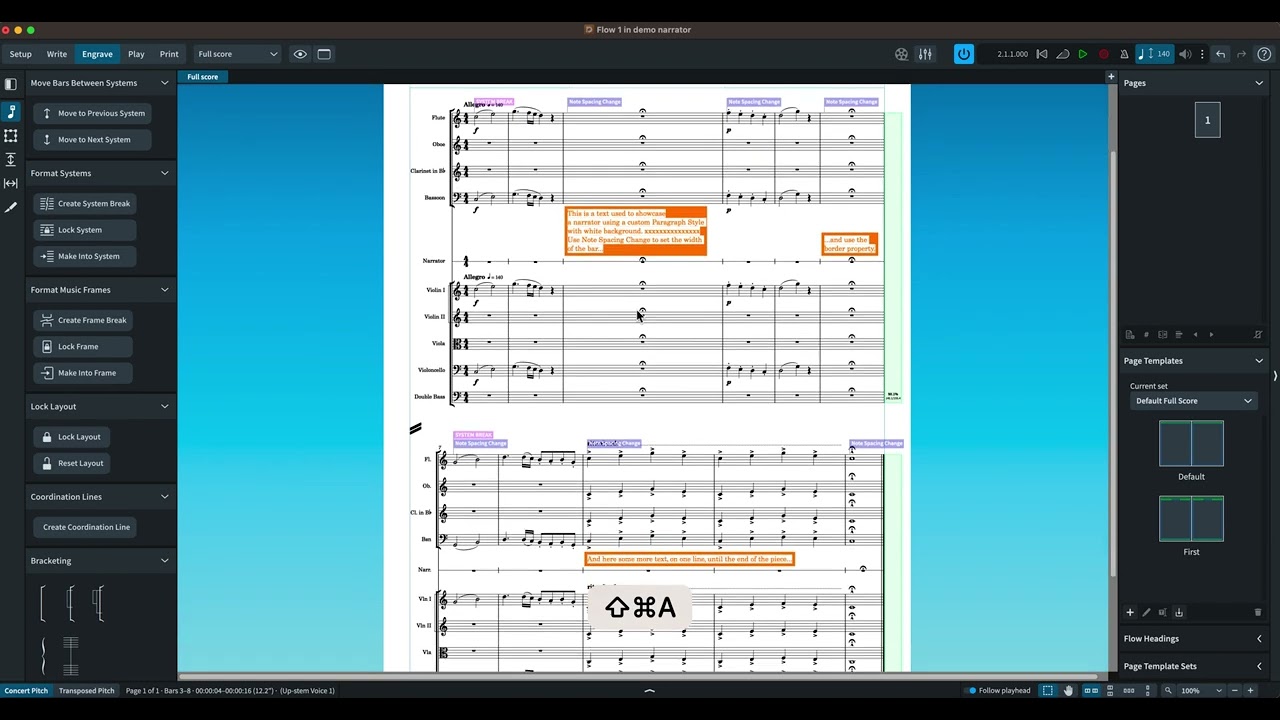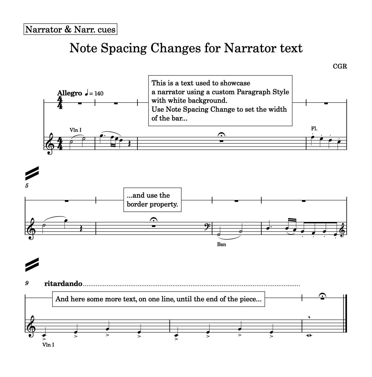Also, to make the boxes cover the bar rests, staff line and the fermatas, set the background (for the Narrator text customised Paragraph Style) to white, don’t use the Border functionality of the Paragraph style, but the Border Property in Properties panel. When I have time I make a video Explaining.