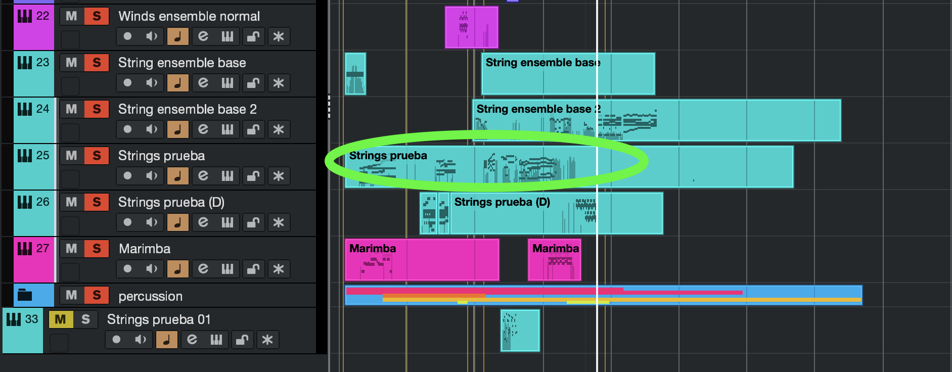 The green- circled part. I can’t copy it in other track because It keeps with the problem. The only solution I can think of is copying the notes and then the CC’s , but I wondered if I could resolve it without having to do it all over again.