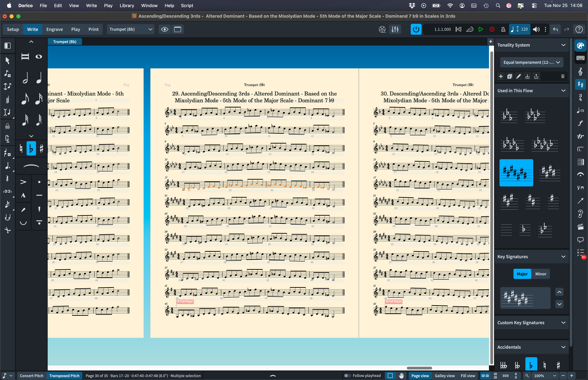 I’m working on a scale technique project for my teaching studio. At the moment, scales in 3rds. I’m having trouble getting Dorico to respell a key signature from Db major to C# major so that I don’t have double flats or sharps.