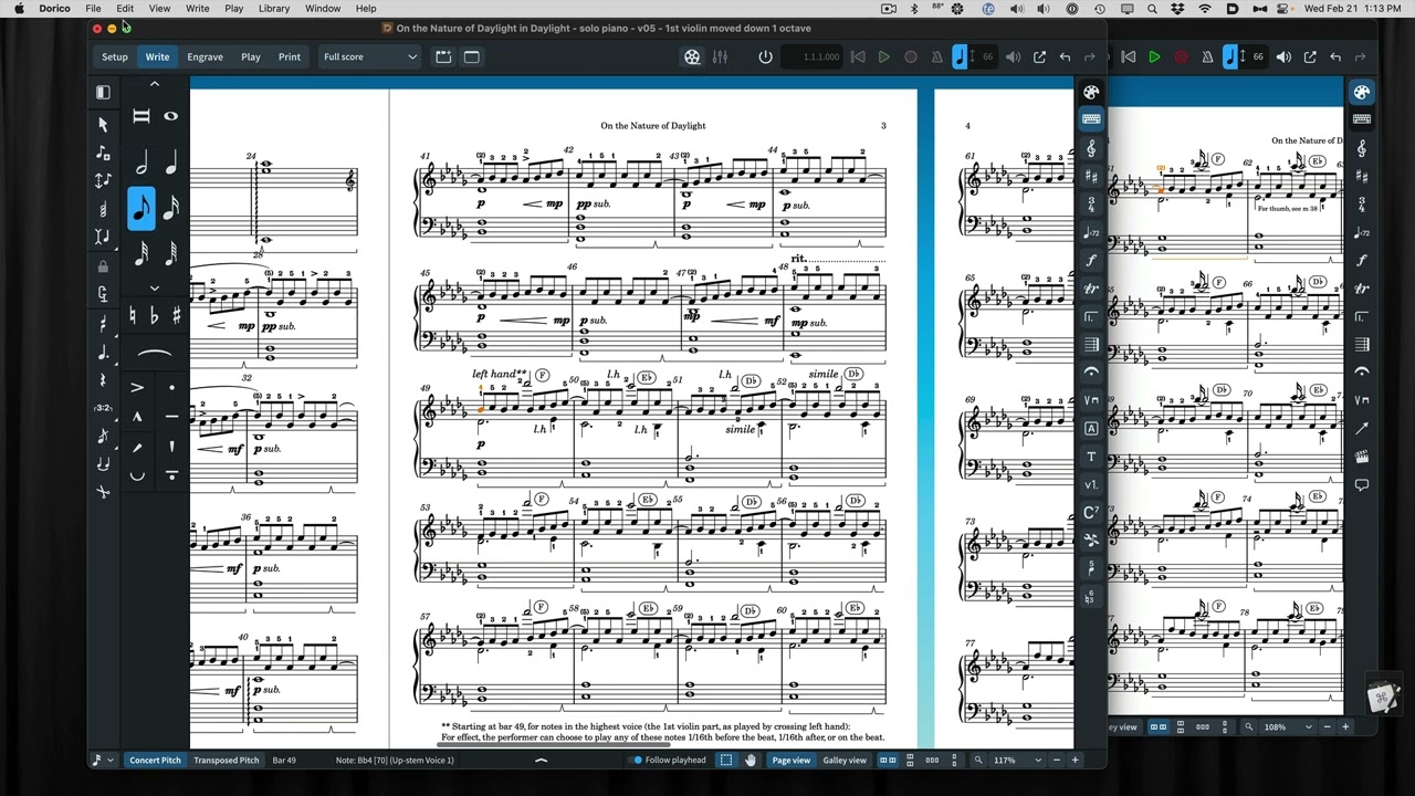 Now I go into project “Daylight - solo piano - v05 - 1st violin moved down 1 octave” - note there is no 1st violin in this score, that’s just me preserving a concept from the original string quintet score!