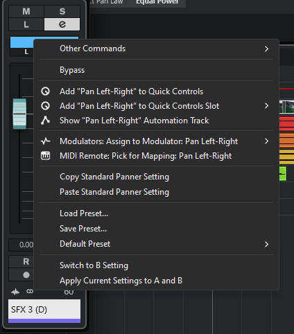 In one of my projects created in the newest Nuendo version I’m unable to change the panner mode. The option simply is not there when I right click the panner in both the mixer and arrange windows and in the inspector. It must be a bug? It is quite annoying.