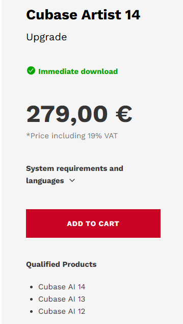 Depending on what release it is you can simply buy the upgrade on the Steinberg website, just click on the “Buy Cubase” button, select Cubase 14 Artist and on the following screen make sure you switch to “Updates & Upgrades”.
