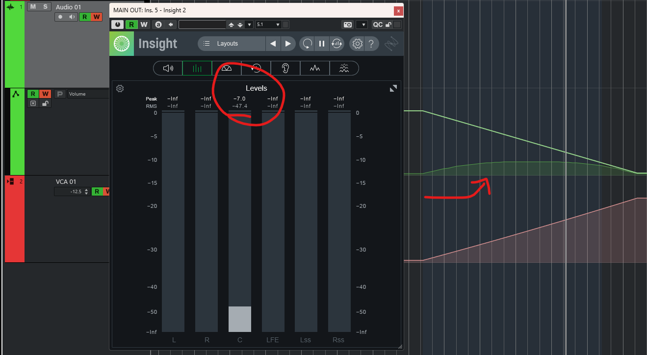 But as the manual states the VCA value should be added to the original trackās value, and in both of the above cases, at where we are located, that audio track value is -10dBFS.